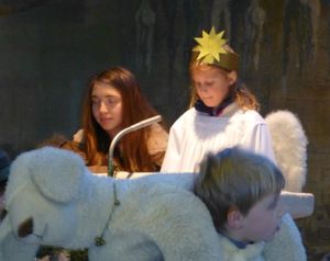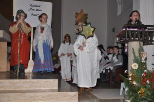 In den beiden Kirchen St. Jakobus und Maria, Königin des Friedens wurden ebenfalls stimmungsvolle Gottesdienste gefeiert. Dafür hatten einige ehrenamtliche Erwachsene mit insgesamt über 40 Kindern im Alter von 4 bis 12 Jahren ein Krippenspiel vorbereitet. Dies erzählte, wie zwei Kinder aus Bethlehem – Miriam und Jonathan (bzw. Johanna) – unverhofft auf dem Dachboden des Stalls die heilige Nacht erlebt haben könnten.