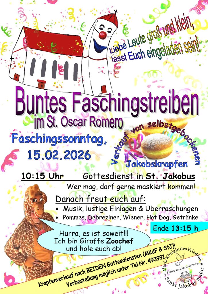 Herzliche Einladung zum bunten Faschingstreiben der Pfarrei Gersthofen am Faschingssonntag, 15.02.2026.